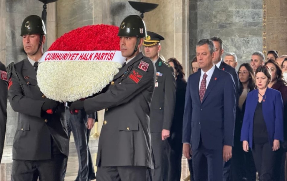 CHP Genel Başkanı Özgür Özel, beraberindeki PM, YDK üyeleri ve milletvekilleriyle Aslanlı Yol’dan yürüyerek Atatürk’ün mozolesine çelenk bıraktı, saygı duruşunda bulundu.