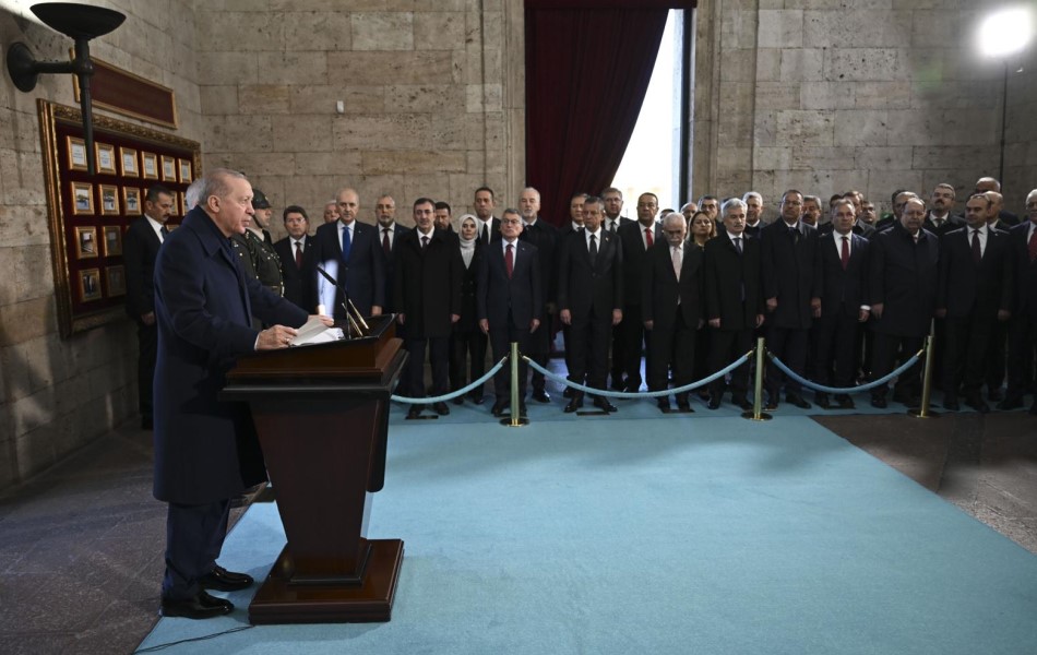 Saygı duruşu ve İstiklal Marşı’nın ardından Anıtkabir özel defterini dolduran Erdoğan, “Türkiye Cumhuriyeti’ne tutku ile sahip çıkıyor ve her karışını yeni eserlerle nakış nakış işliyoruz. İçeride huzur ve İstikrarlı, dışarıda muzaffer Türkiye için gece gündüz demeden çalışıyoruz. Türkiye küresel güç olma yolunda emin adımlarla ilerlemektedir” ifadelerini kullandı.
